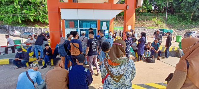 HARAPANMEDIA.COM, BATAM – Para penumpang memadati pelabuhan ASDP Indonesia Ferry (Persero) Telaga Punggur, Jumat (29/4/2022). Mereka berada di sana untuk mennunggu jadwal keberangkatan kapal Ro-ro perjalanan Batam – Kuala Tungkal, Jambi.