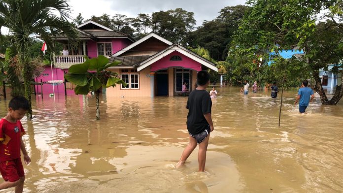 HARAPANMEDIA.COM, LINGGA – Hujan deras yang mengguyur sejak dini hari membuat Kampung Putus di Daik, Kabupaten Lingga, Provinsi Kepulauan Riau (Kepri) terendam banjir.