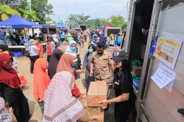 Sejak pagi hari, sekitar pukul 9:00 WIB, puluhan warga sudah datang mengunjungi stand-stand pedagang yang menjual beraneka ragam komoditas pangan.