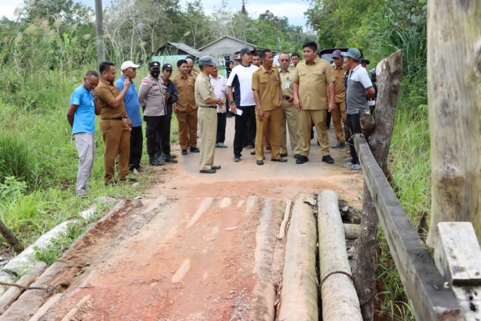 Setibanya di lokasi, Bupati Bintan langsung melihat kondisi real lapangan untuk kemudian mepastikan rehabilitasi jembatan yang akan dilakukan.