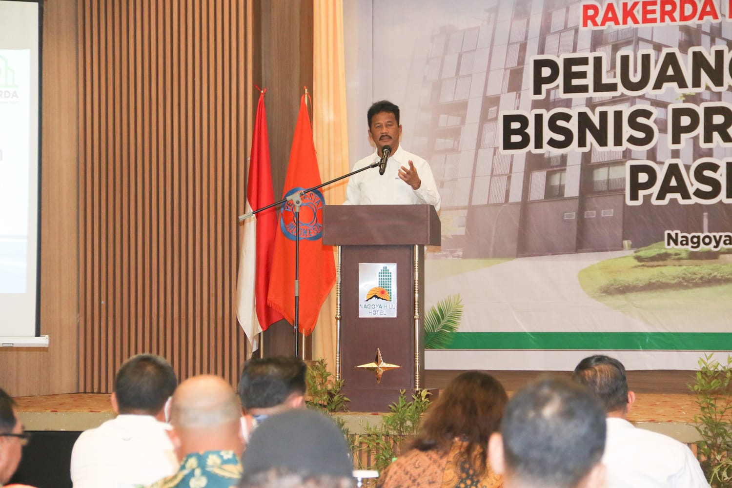 HARAPANMEDIA.COM, BATAM – Rapat Kerja Daerah (Rakerda) Real Estate Indonesia (REI) Khusus Batam dibuka ali Kota Batam yang juga Kepala Badan Pengusahaan (BP) Batam, Muhammad Rudi. Kehadiran Rudi disambut para pengusaha properti yang bergabung dalam REI Khusus Batam.