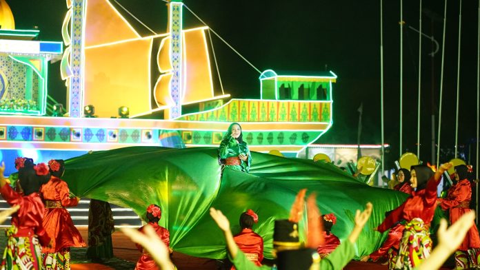 HARAPANMEDIA.COM, LINGGA– Penampilan tari tradisional atau tari kolosal di akhir acara, memeriahkan pembukaan ajang Seleksi Tilawatil Qur’an dan Hadits atau STQH tingkat Kabupaten Lingga, Daik, Minggu (5/3/2023). Tarian kreasi ini berjudul ‘Pasal Yang Pertama’.