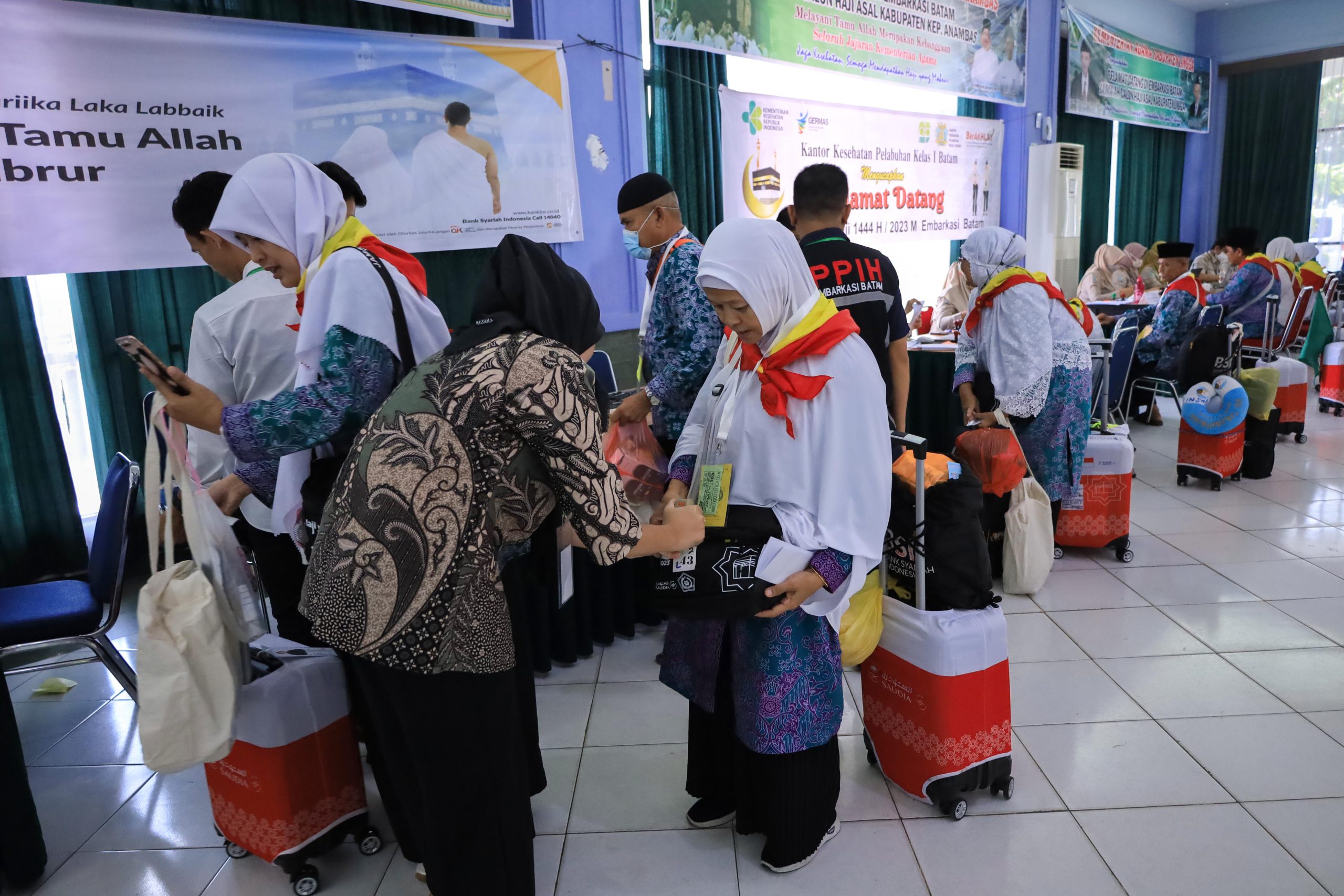 HARAPANMEDIA.COM, BATAM – Sebanyak 369 Jemaah Calon Haji Kloter I Embarkasi Batam mulai menghuni kamar-kamar di Asrama Haji Batam pada Selasa (23/5/2023).