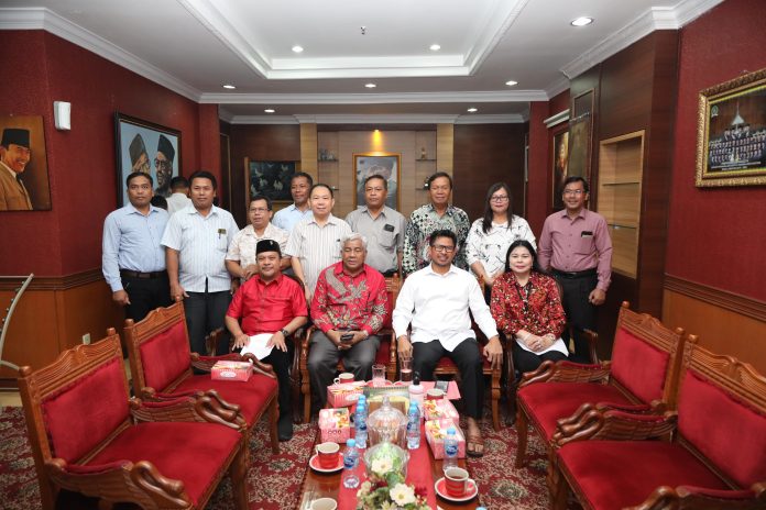 HARAPANMEDIA.COM, BATAM – Ketua Dewan Perwakilan Rakyat Daerah (DPRD) Kota Batam Nuryanto S.H., M.H. bersama anggota DPRD Kota Batam Budi Mardianto dan Rubina Situmorang menerima audiensi Badan Kerjasama Antar Gereja (BKAG) Kota Batam di ruang kerjanya pada Rabu (13/9/2023) pagi.