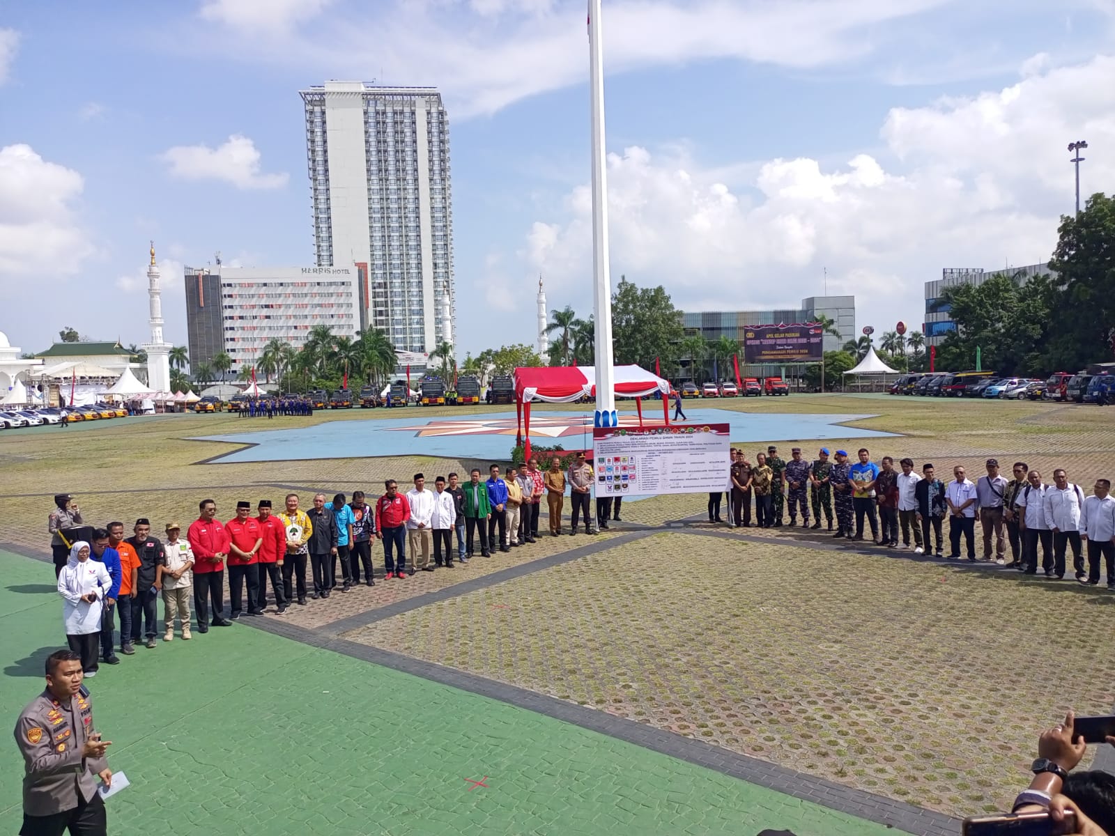 Ketua DPRD Kota Batam Nuryanto mengatakan anggota DPRD Batam sepakat mendukung pemilu 2024 di Kota Batam berjalan aman, nyaman dan damai. Nuryanto menghadiri gelar Pasukan Operasi Mantap Brata 2023-2024 dalam rangka pengamanan Pemilu 2024 sekaligus deklarasi Pemilu Damai di Dataran Engku Putri Batam Center, Selasa (17/10/2023).