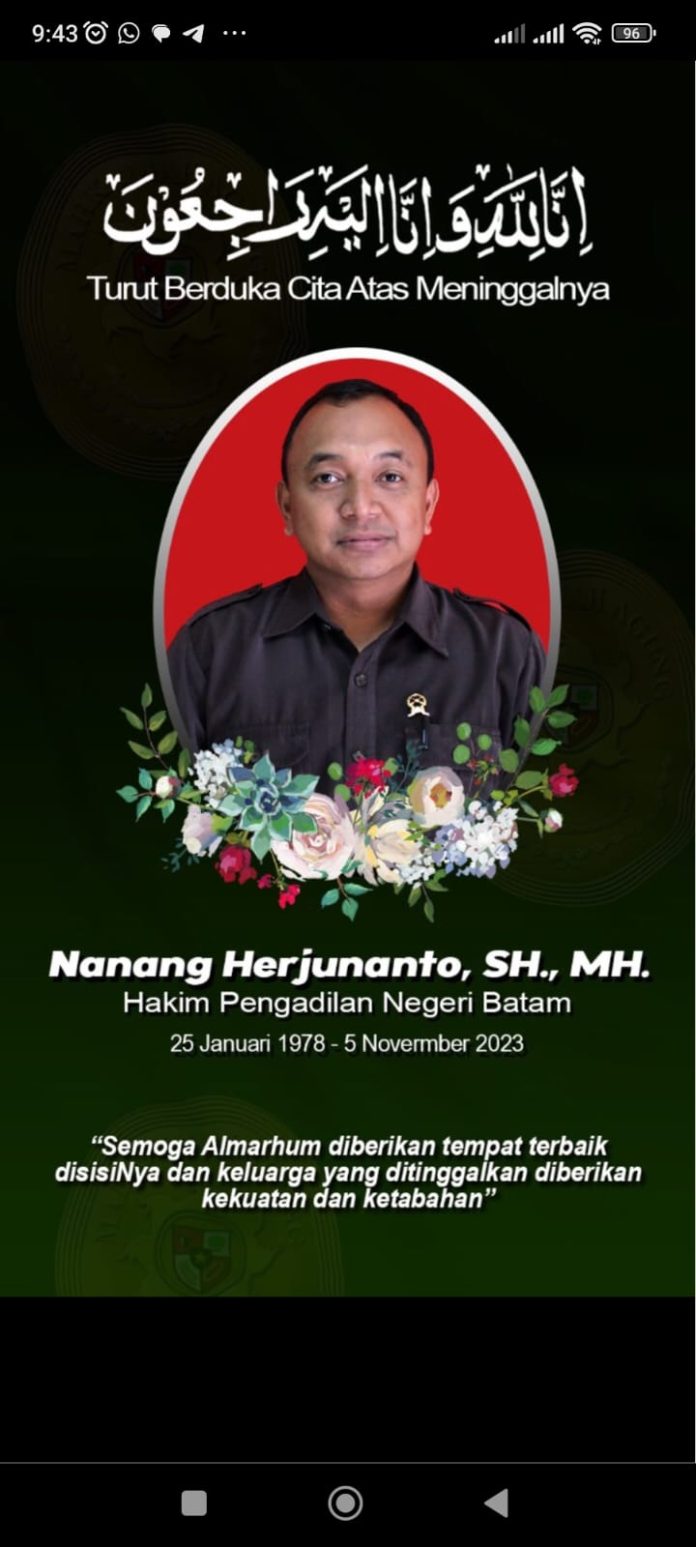 HARAPANMEDIA.COM, BATAM – Seorang Hakim Pengadilan Negeri (PN) Batam ditemukan meninggal di salah satu hotel di Batam pada Minggu (5/11/2023).