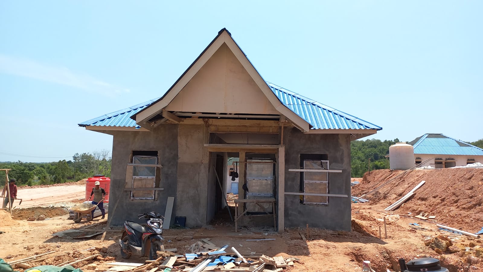 Rumah yang dibangun berlokasi di Tanjung Banon, kini realisasi pengerjaan keempat rumah tersebut sudah hampir 90 persen.