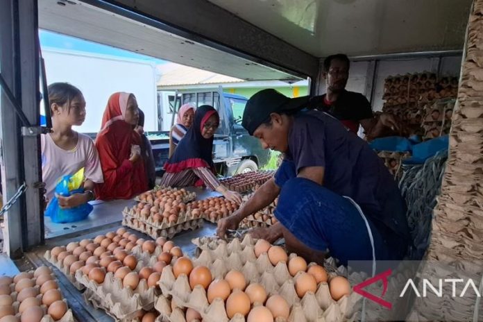 Adapun komoditas telur ayam dijual pedagang Rp53 ribu per papan, gula Rp14 ribu per kilogram, cabai setan Rp55 ribu per kilogram, cabai merah Rp70 ribu per kilogram dan cabai rawit Rp55 ribu per kilogram.