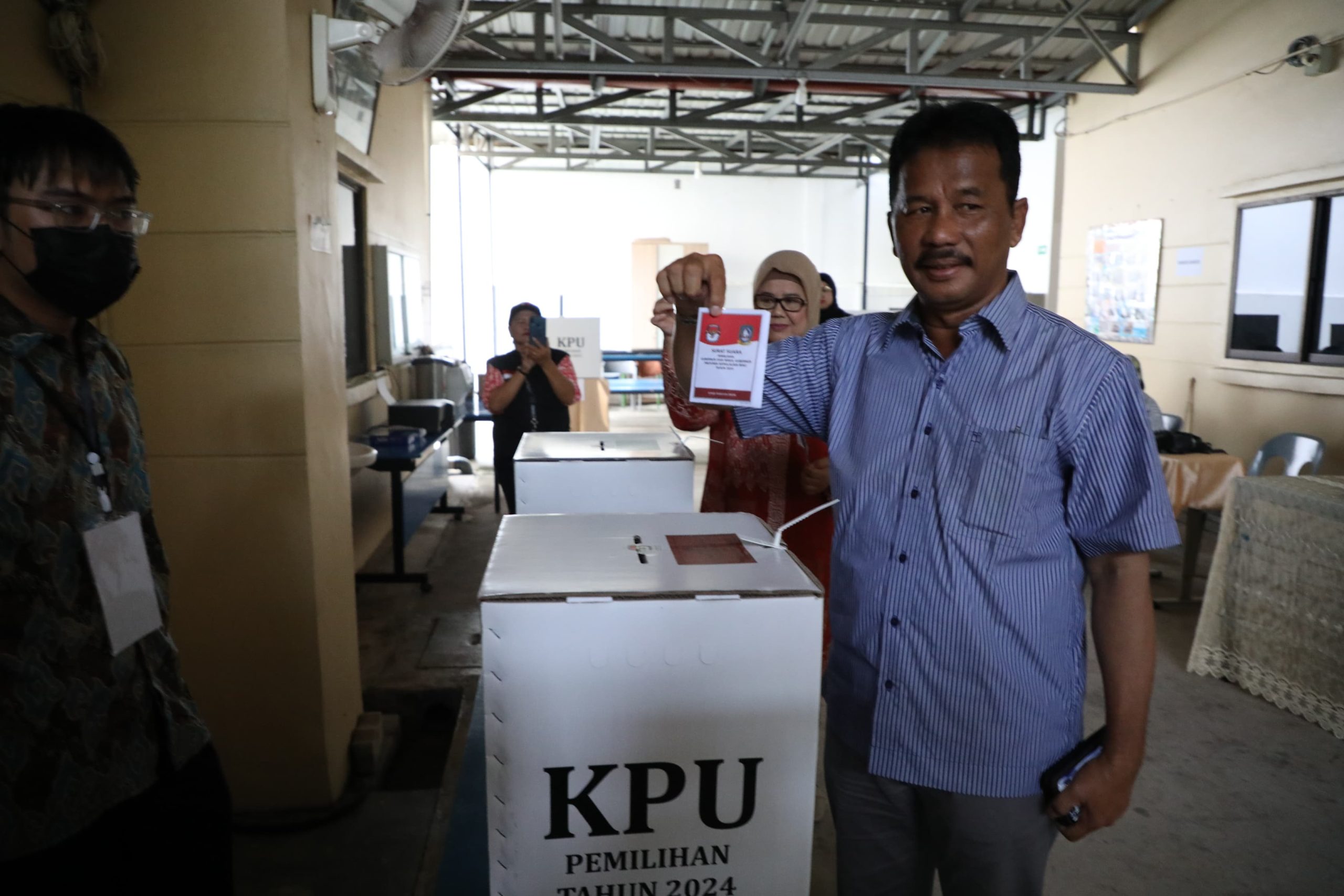 HARAPANMEDIA.COM, BATAM – Wali Kota Batam Muhammad Rudi bersama Istri dan keluarganya datang lebih awal ke TPS 017, di Perum Rosedale, Teluk Tering, Kota Batam. Ia menjadi yang pertama mencoblos di TPS Komplek Rosedale Blok E ini.