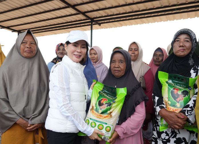 Sebagai bagian dari rangkaian kegiatan, Li Claudia juga menyalurkan bantuan sosial berupa 250 kantong beras, masing-masing seberat 5 kilogram, kepada masyarakat sekitar.