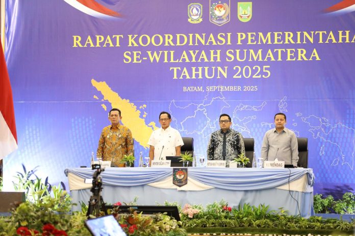 HARAPANMEDIA.COM, BATAM- Wali Kota Batam, Amsakar Achmad bersama Wakil Wali Kota Batam, Li Claudia Chandra menghadiri Rapat Koordinasi (Rakor) Pemerintahan se-Wilayah Sumatera Tahun 2025. Acara yang dipimpin langsung Menteri Dalam Negeri Tito Karnavian ini digelar di Swiss Bell Harbourbay, Minggu (21/9/2025).