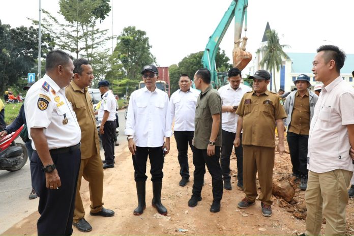 Wali Kota Batam, Amsakar Achmad, meninjau pengerjaan box culvert dan peningkatan jalan di Jalan Raja Isa, Batam Center itu pada Senin (13/10/2025).