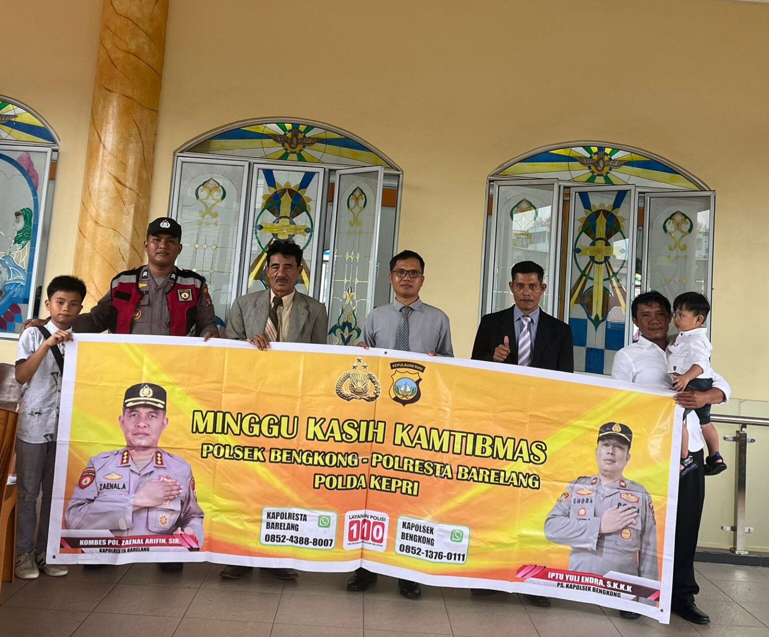 Dalam kegiatan ini, Polsek Bengkong melakukan patroli dan diskusi dengan jemaat tentang situasi kamtibmas.